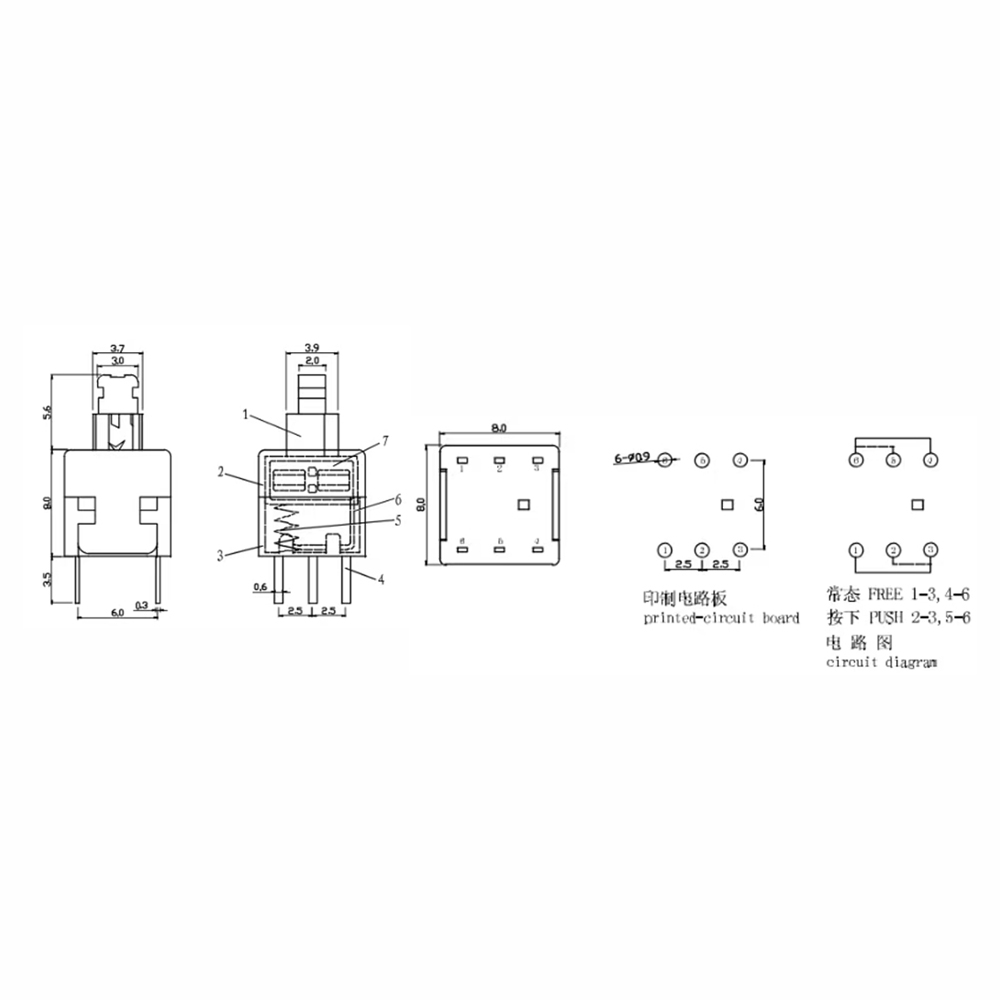 # PULSADOR + RET. 8X8 MM 6CCI 0.1A