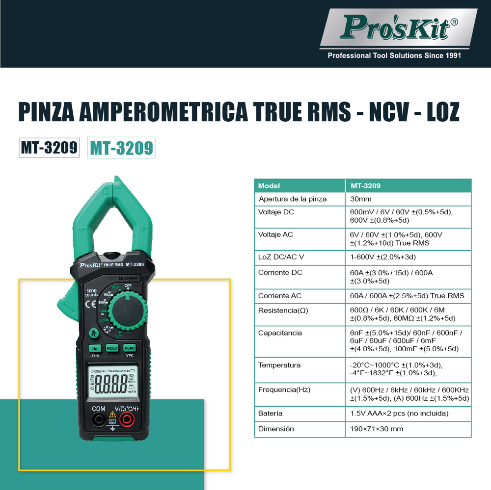 Voltaje AC: 6V / 60V ±(1.0%+5d), 600V ±(1.2%+10d) True RMS