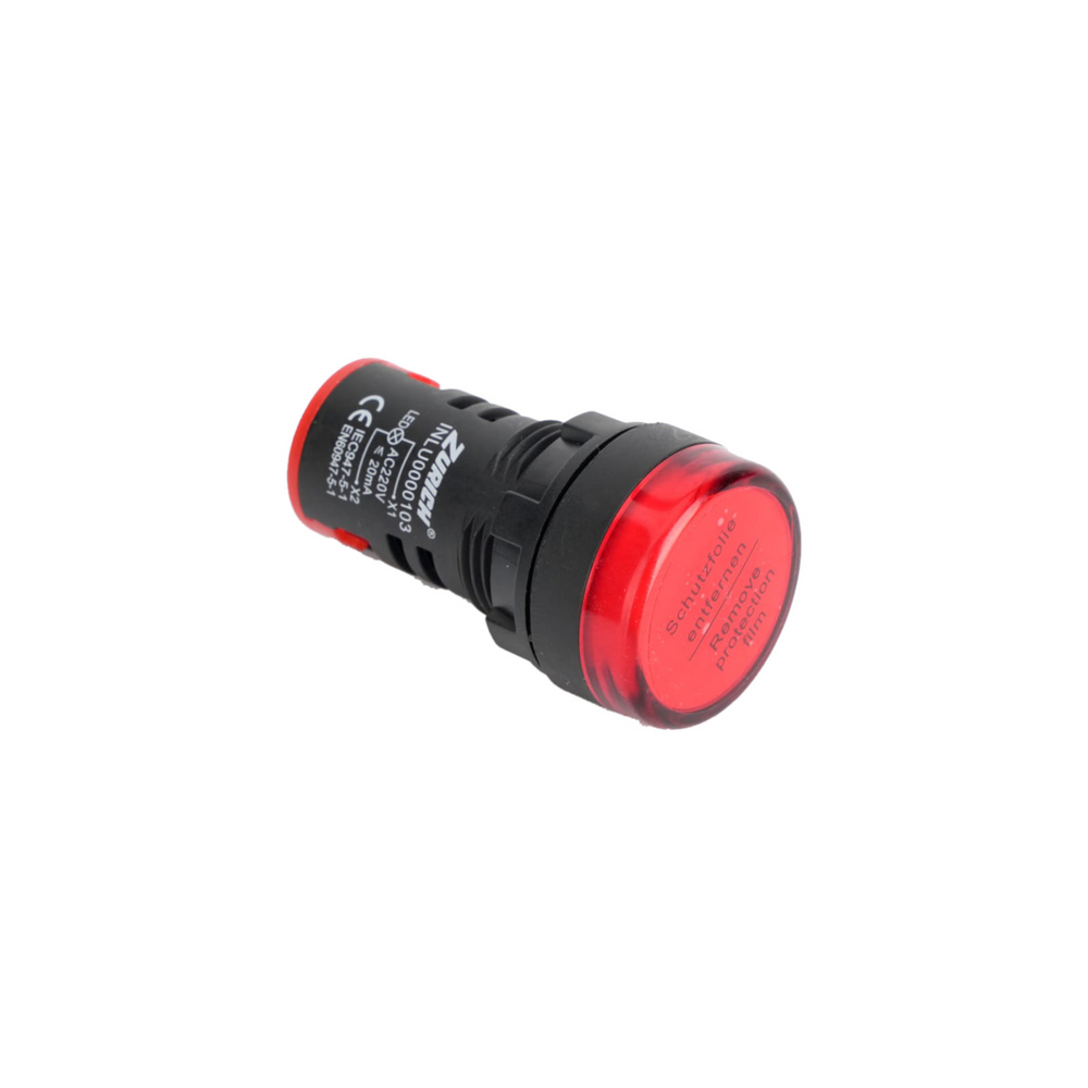 Forma del cabezal: Redonda Grado de protección: IP20 Corriente: 10A Fluctuación de voltaje: ±2 % Especificaciones: Diametro: 22 mm Brillo: ≥100 cd/m² Resistencia de aislamiento:≥2 mΩ Temperatura de funcionamiento:-25 °C a +55 °C Vida útil: ≥30 000 h