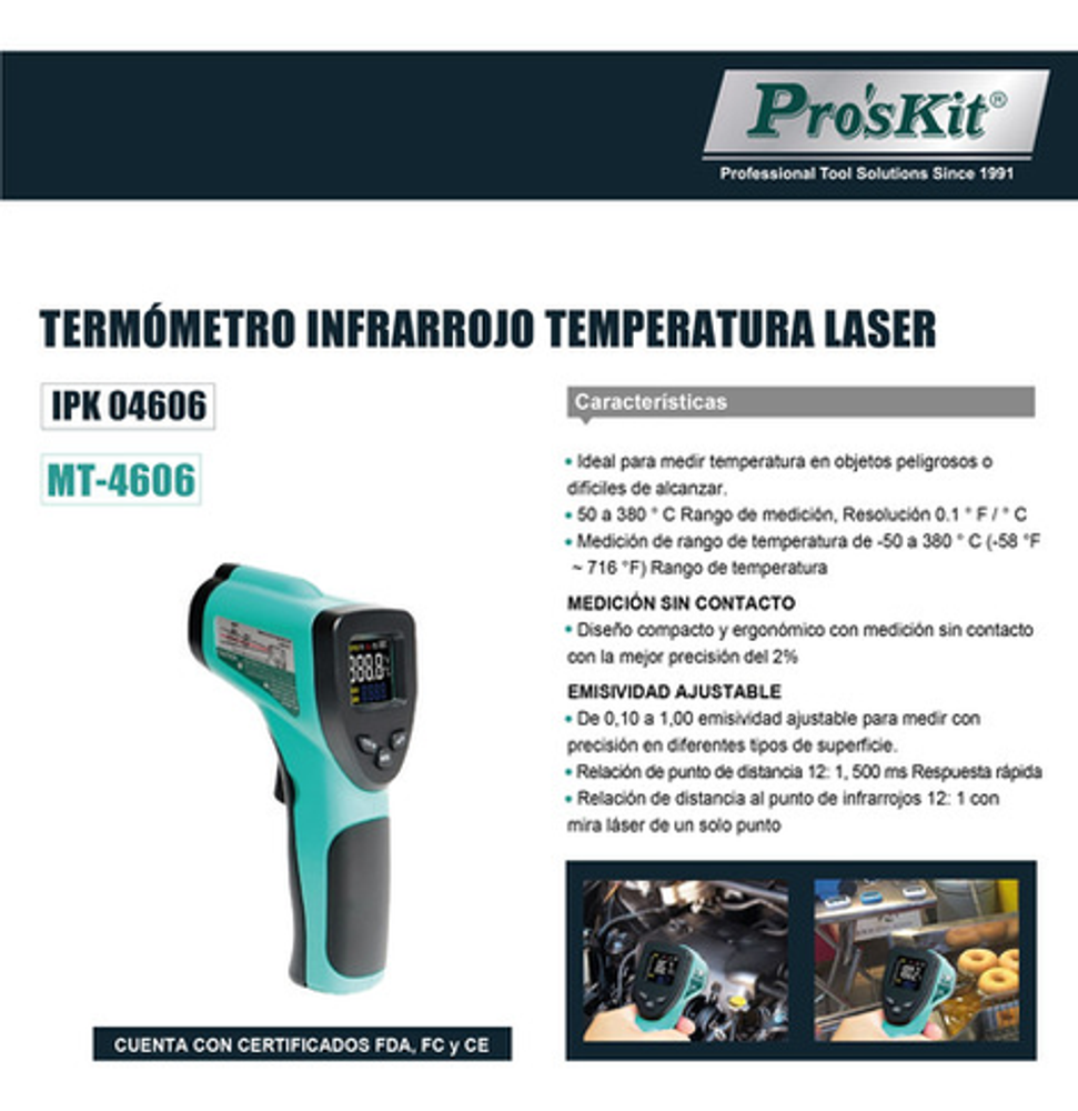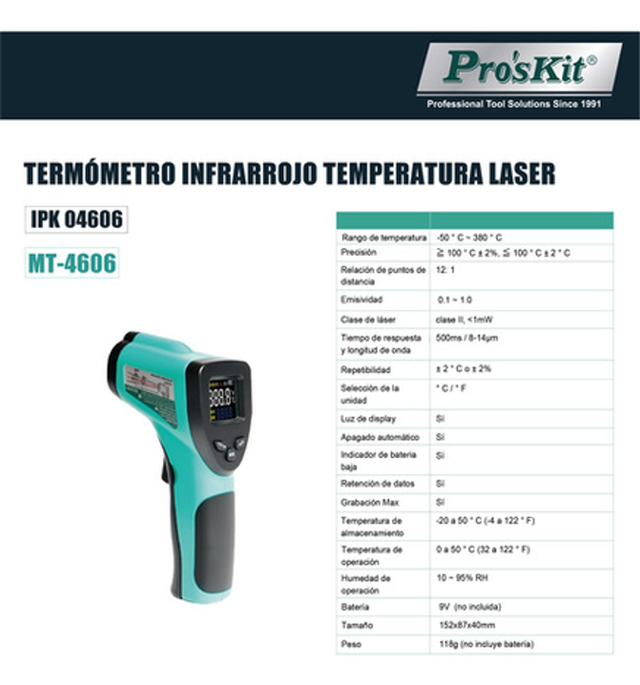 Termometro Infrarrojo Medidor de Temperatura Pistola Laser PROSKIT MT-4606
