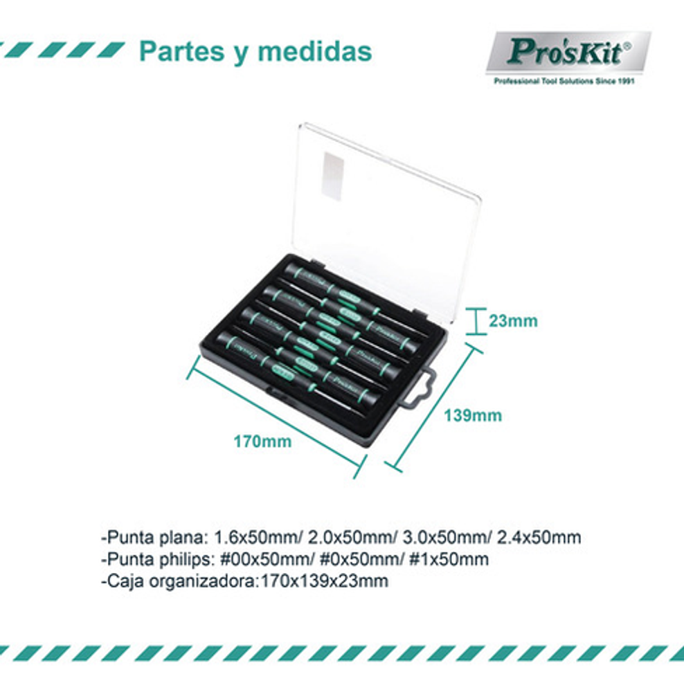 SET DESTORNILLADOR PLANOS Y PHILIPS 7PCS PROSKIT