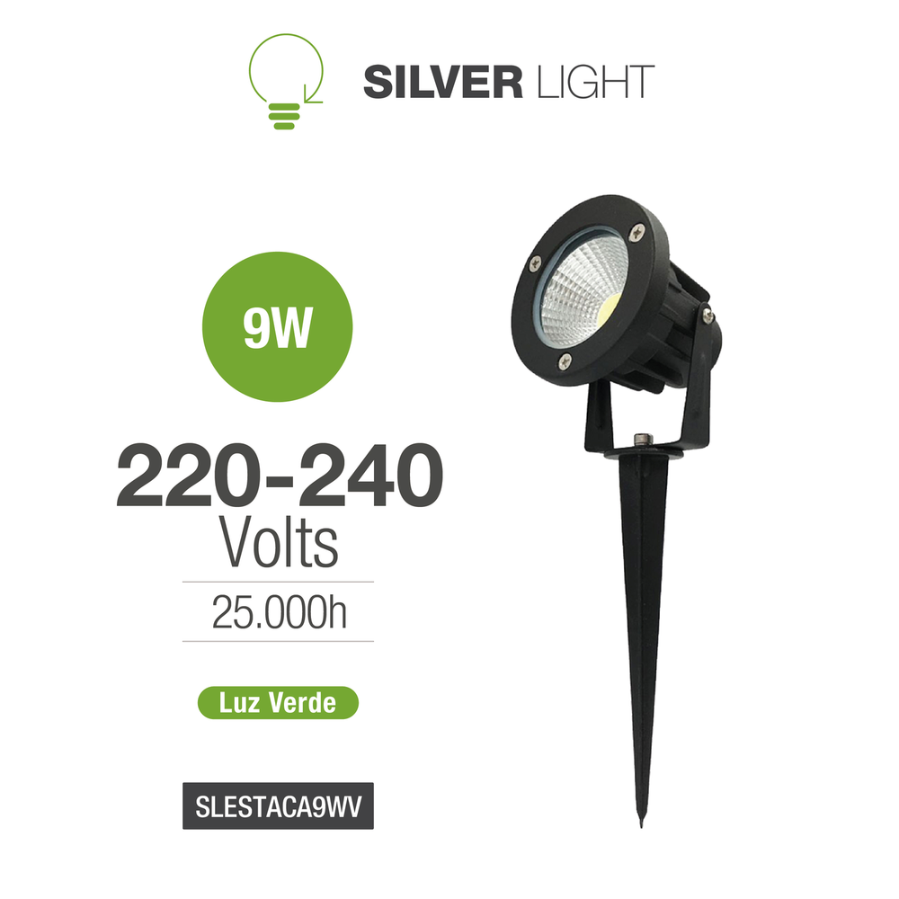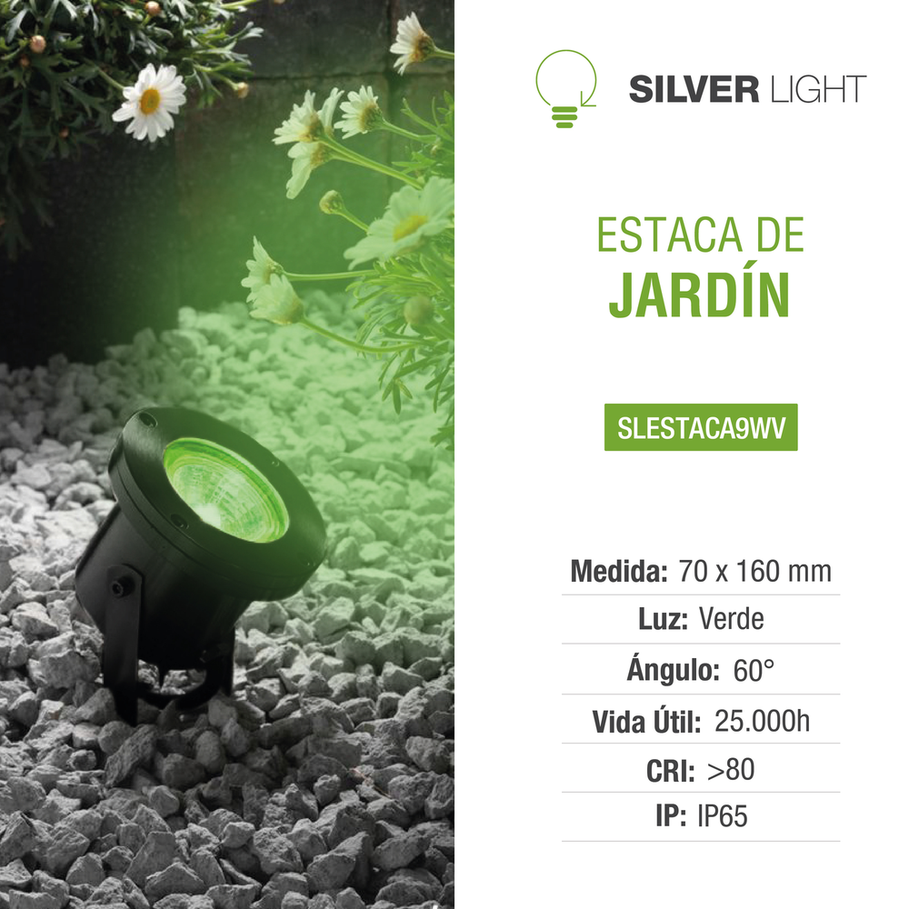 Estaca de jardín con módulo LED integrado de luz verde (SLESTAC9WV)