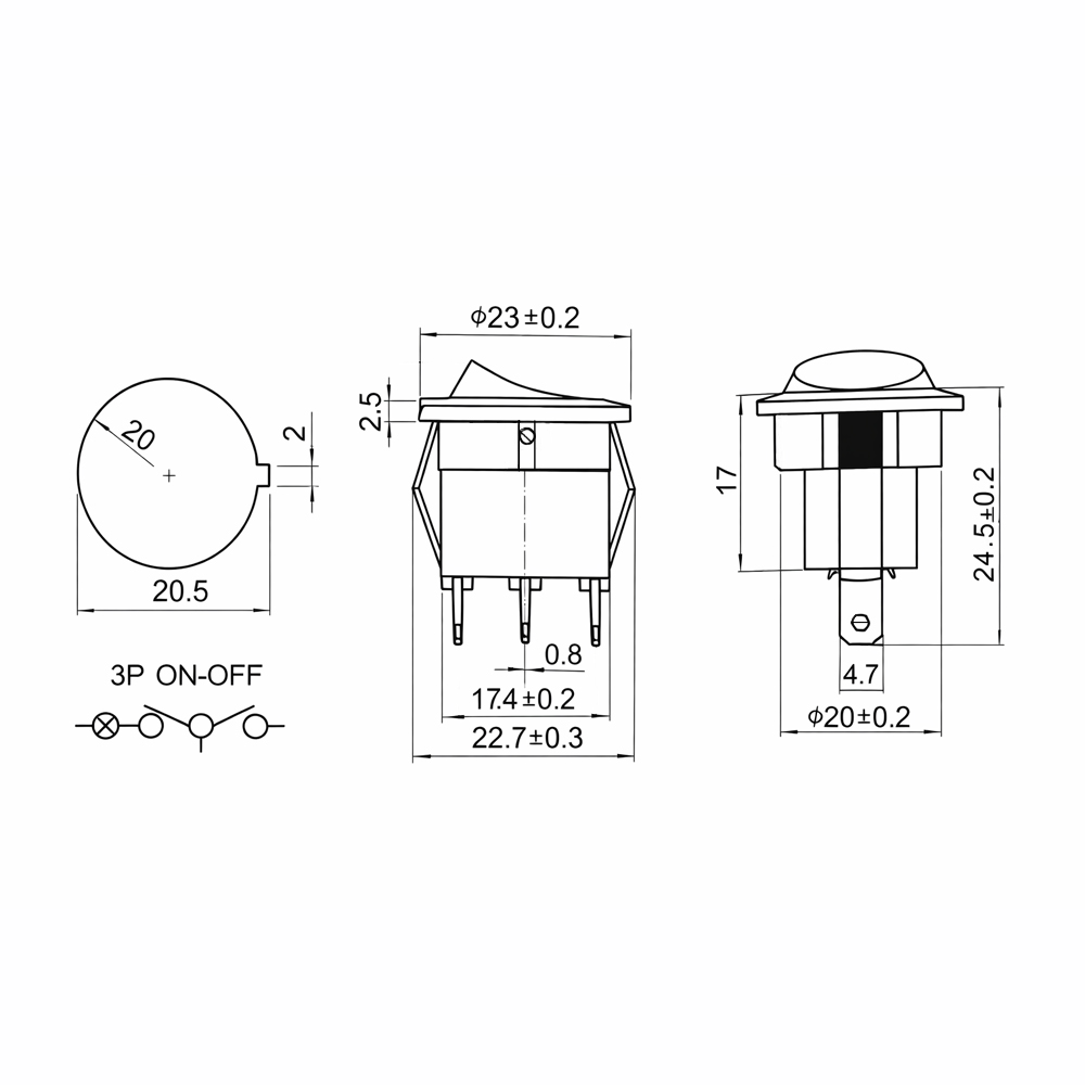 LLAVE TECLA REDONDO3C6A ON*OF ILUMINADO