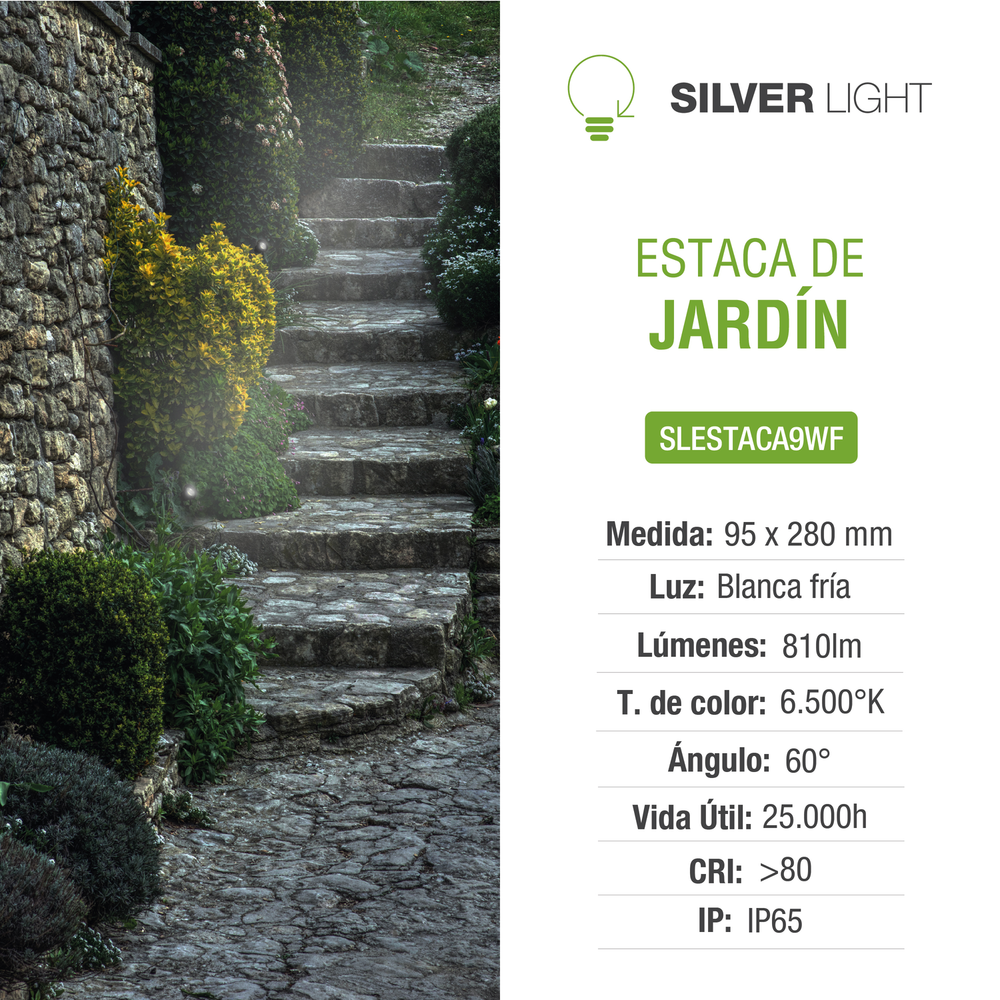 Potencia: 9W Medida (AxBxC): 95 x 280mm Luz: Blanco frio Con sensor de movimiento: Calado: Lúmenes: 810lm T. de color: 6.500ºK Ángulo: 60º Vida útil: 25.000h Zócalo: CRI: >80 IP: IP65 Tensión: 100240 V Hertz: 50 Hz
